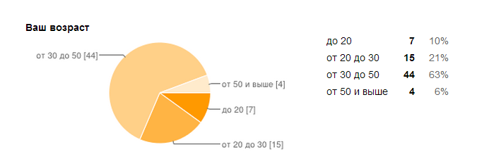 В опросе было задействовано 70 человек. Опрос проводился через Интернет, позволяя задействовать самых разных людей.